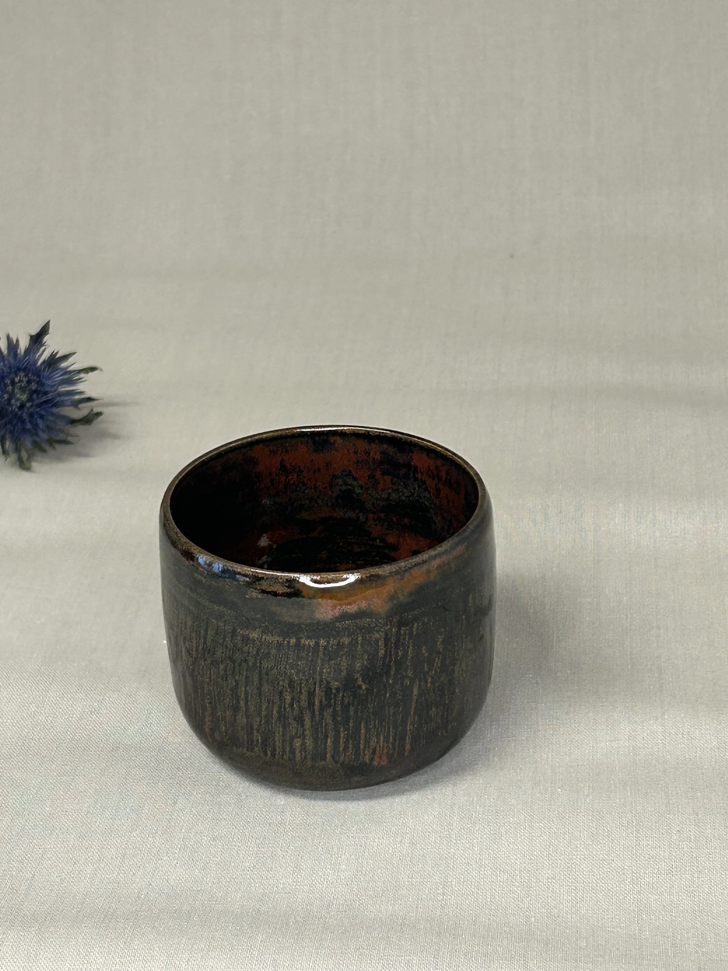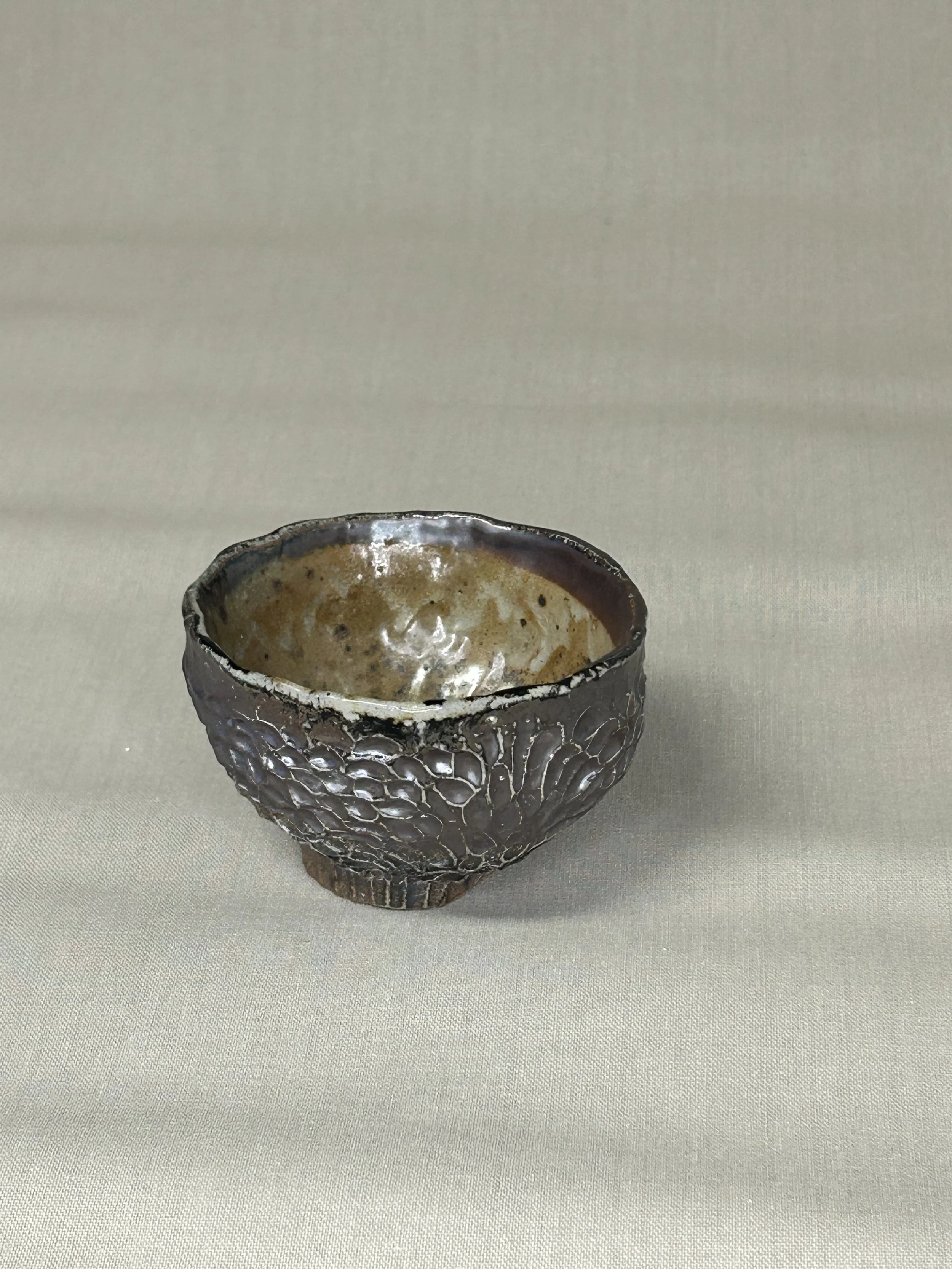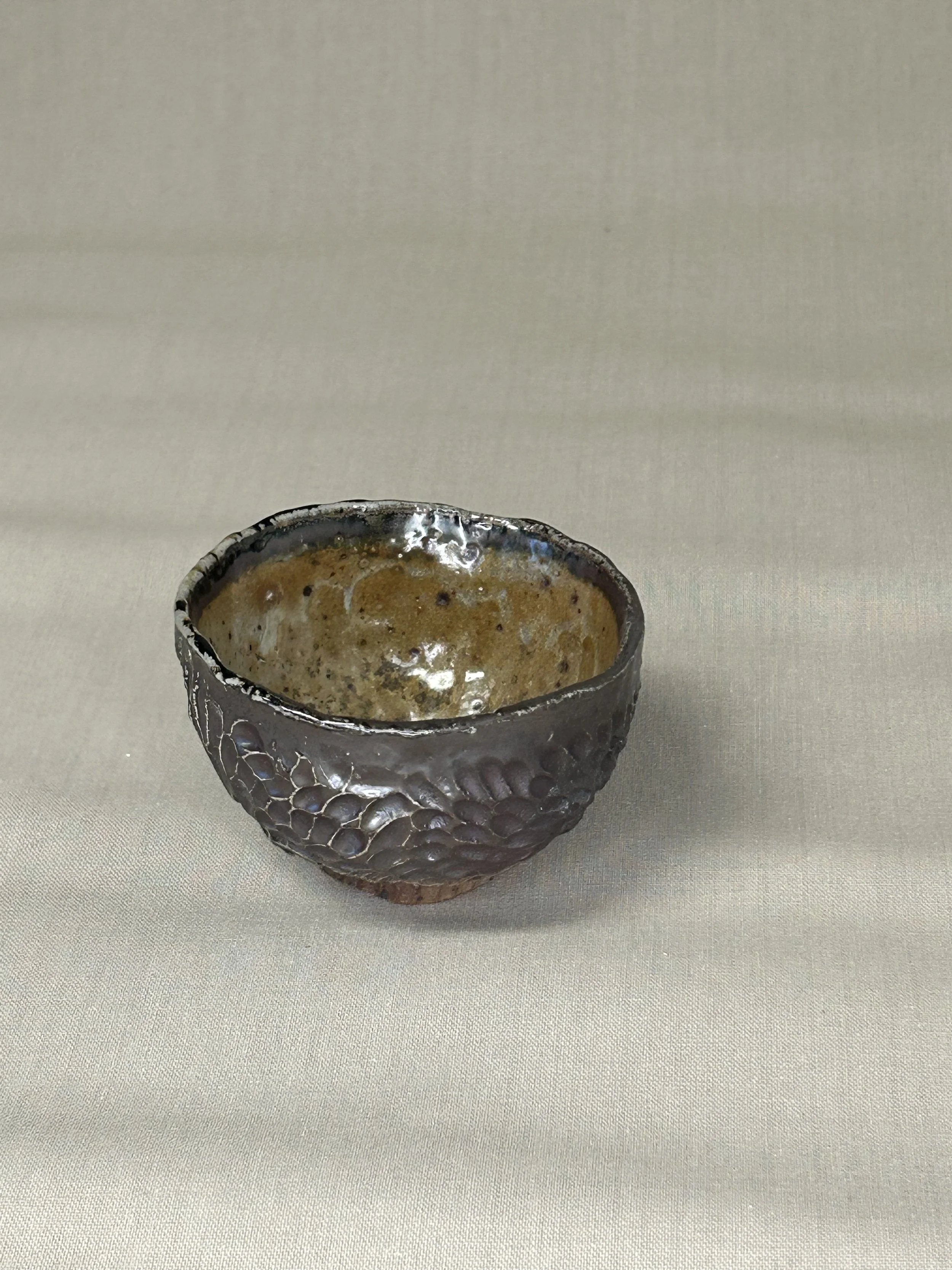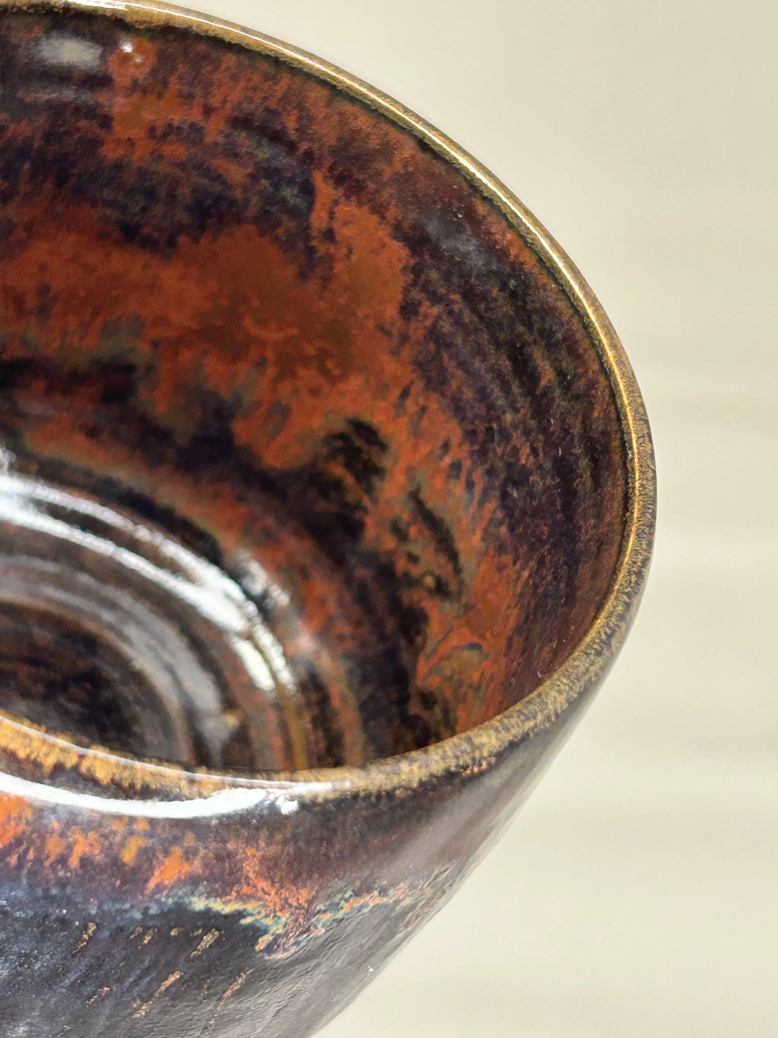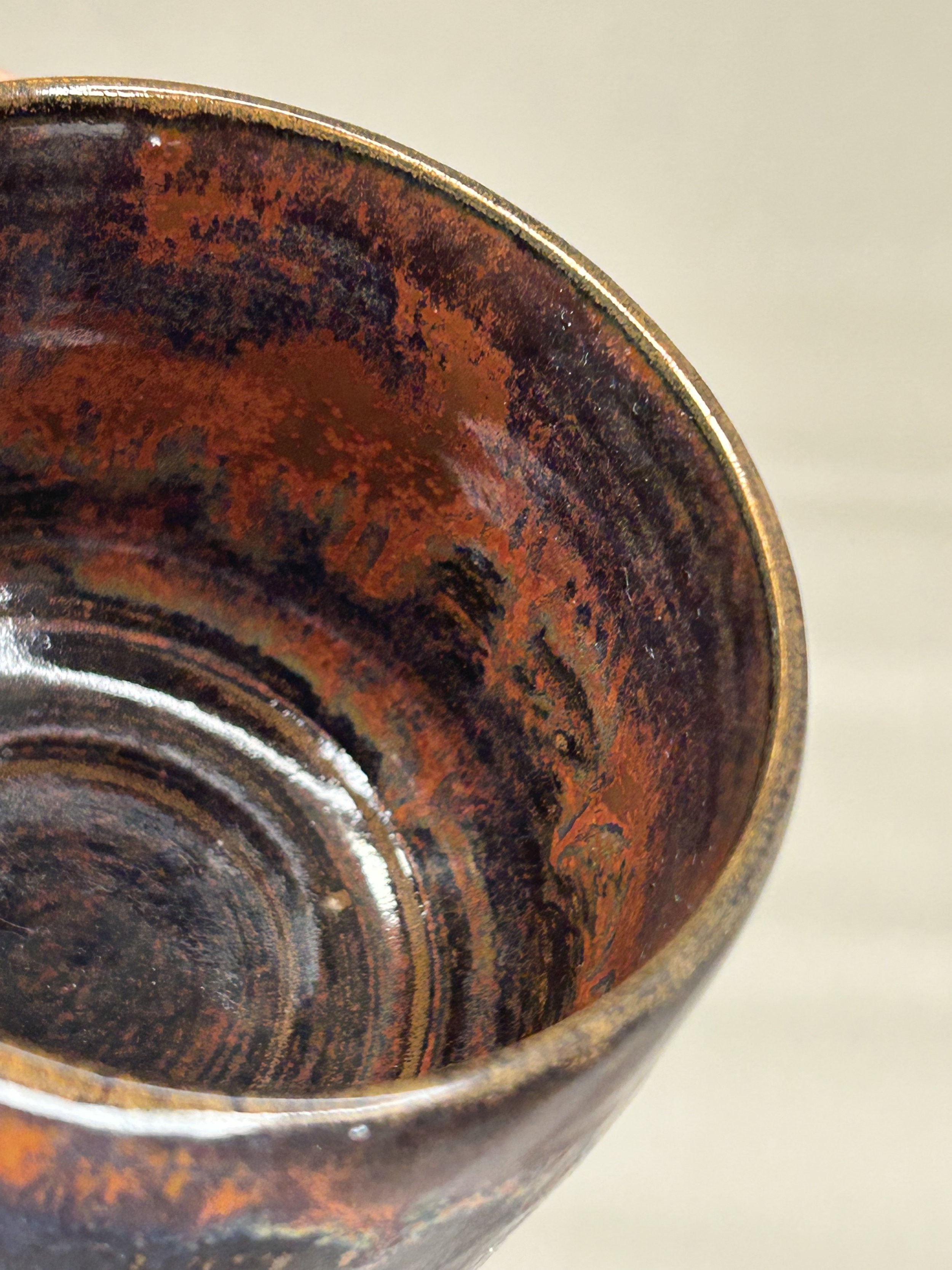 Innen transparent, außen bernsteinfarben glasiert.