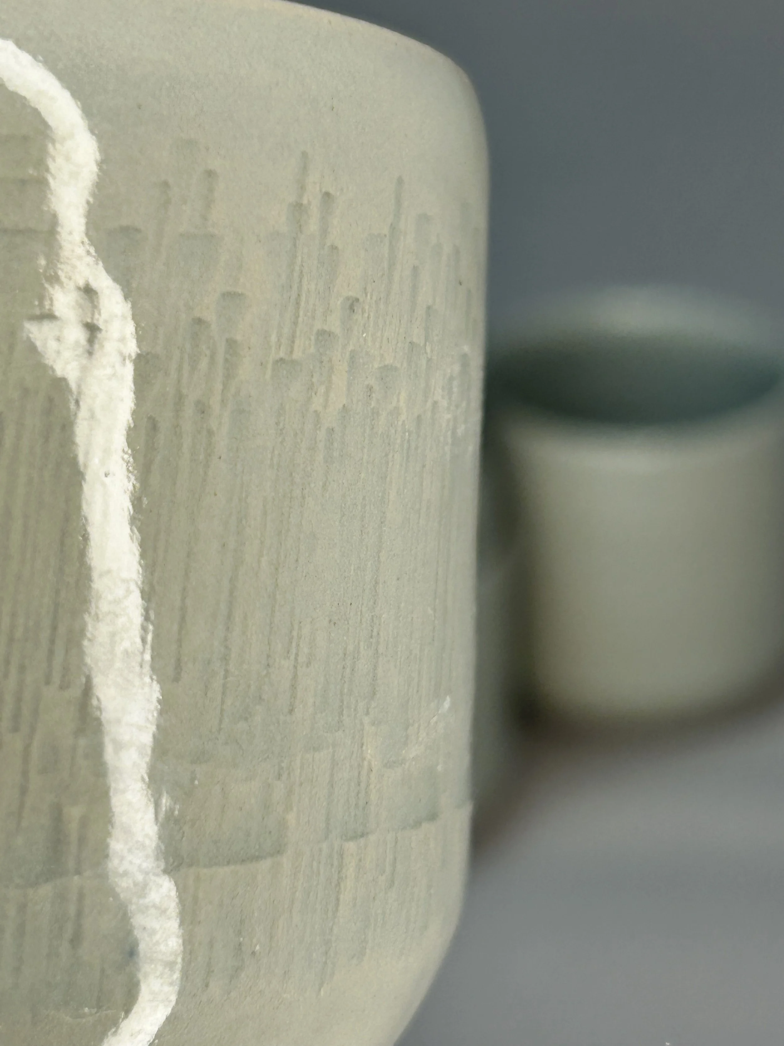 Gedreht aus einer groben Spezialmasse, die in den sehr hohen Temperaturen im Holzbrand bestehen kann. Teilweise verziert.