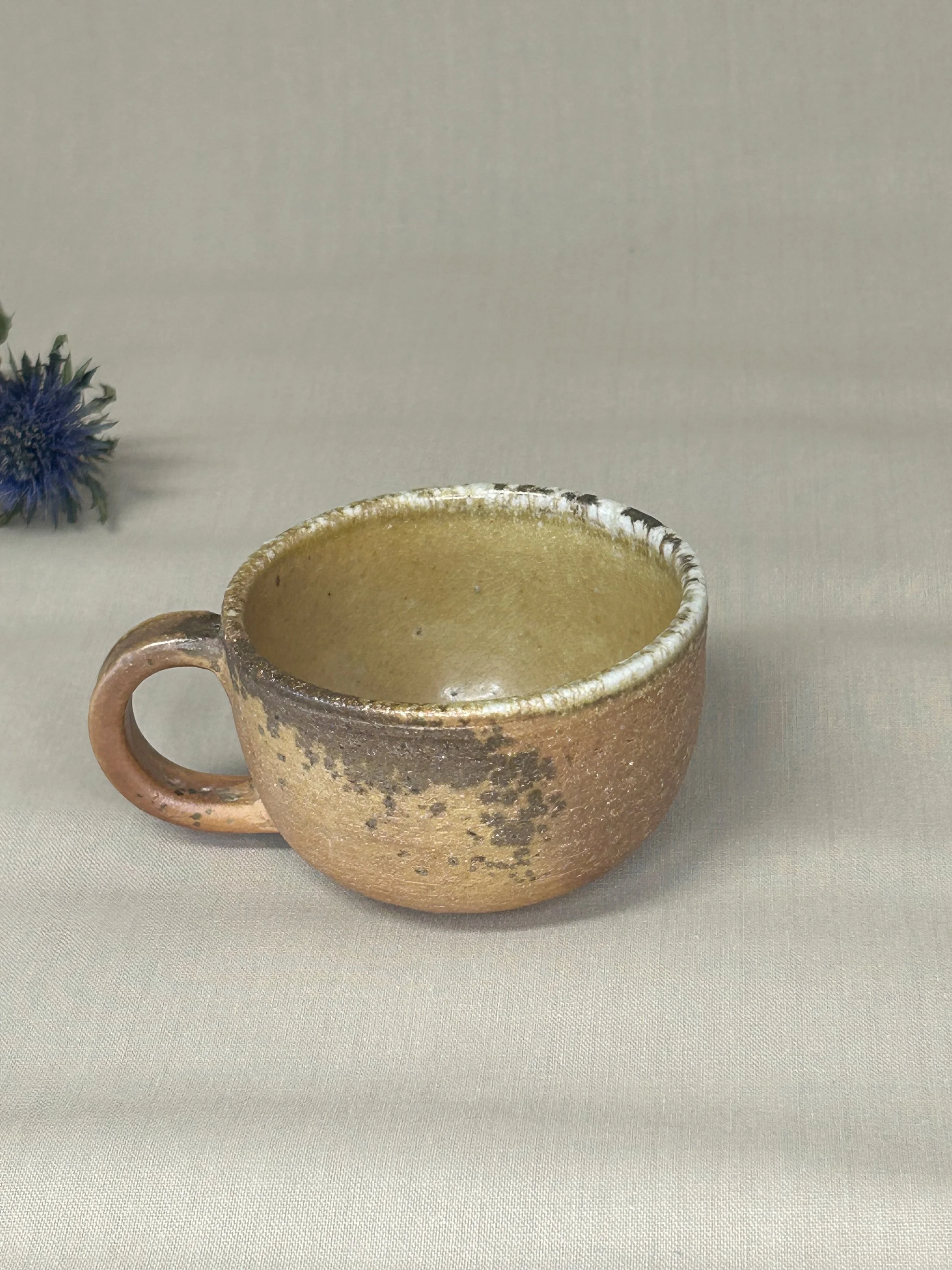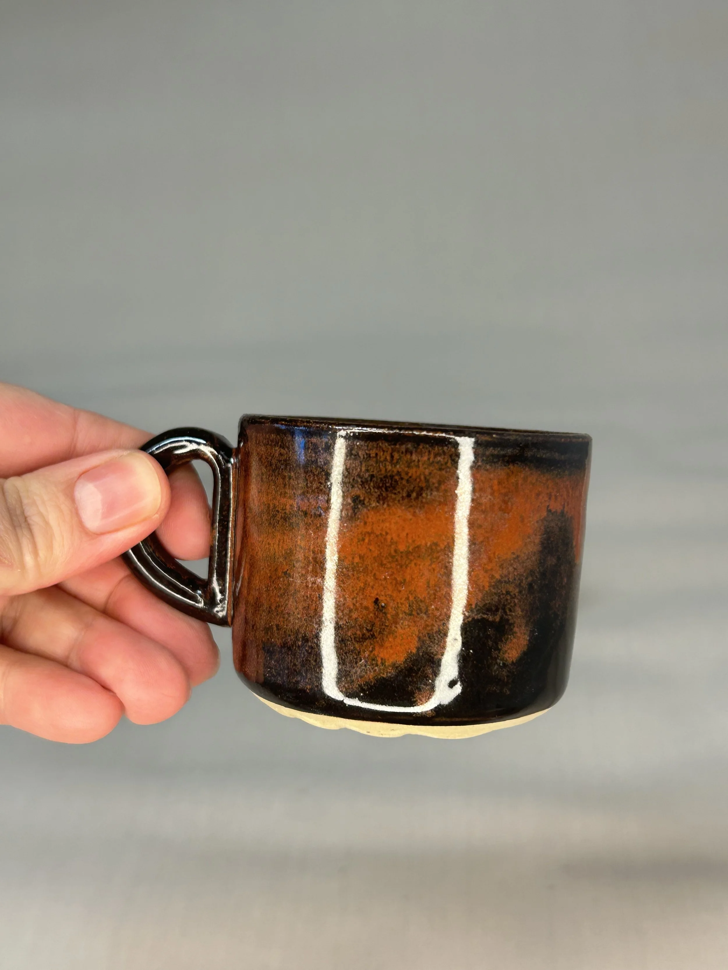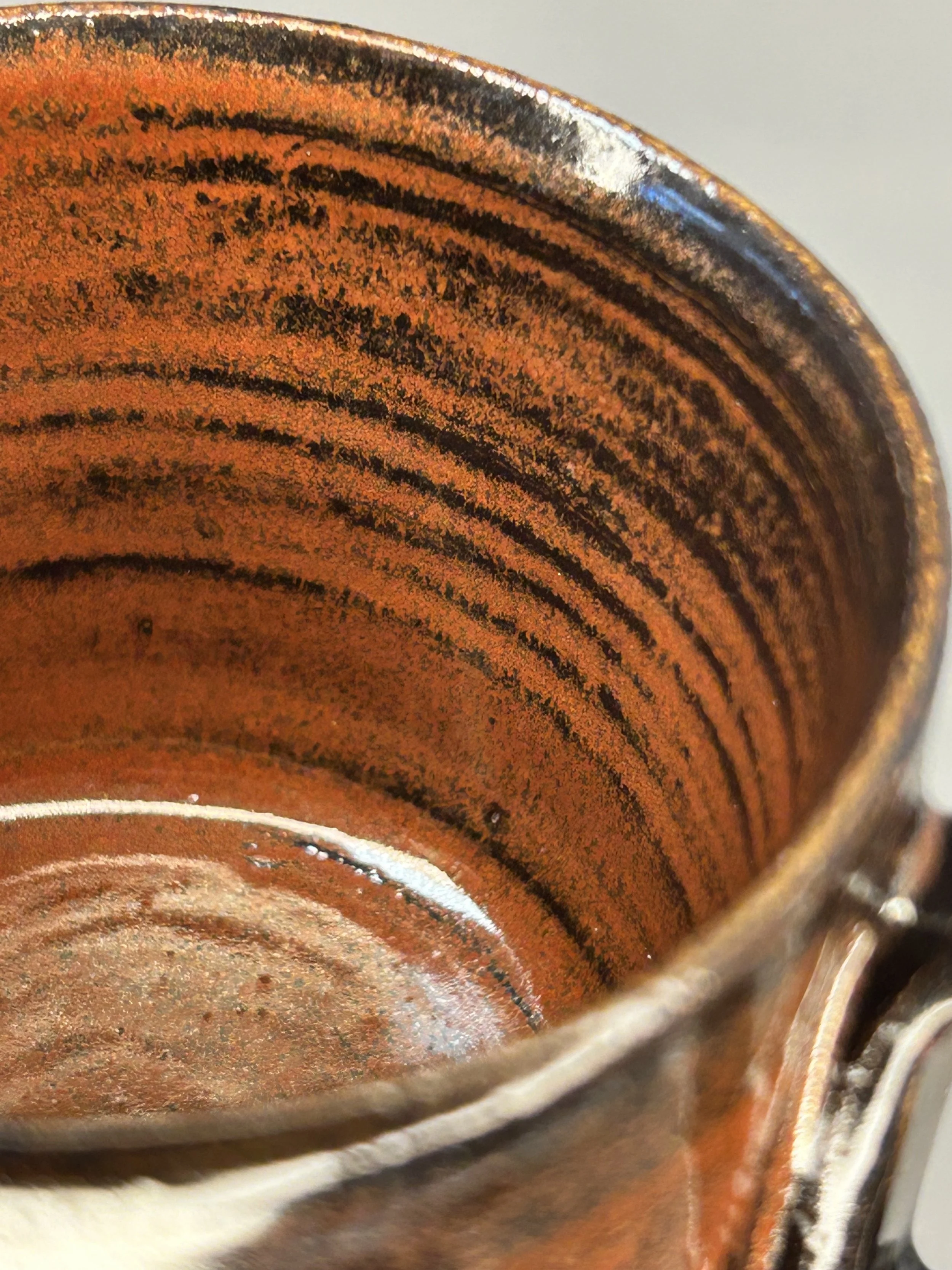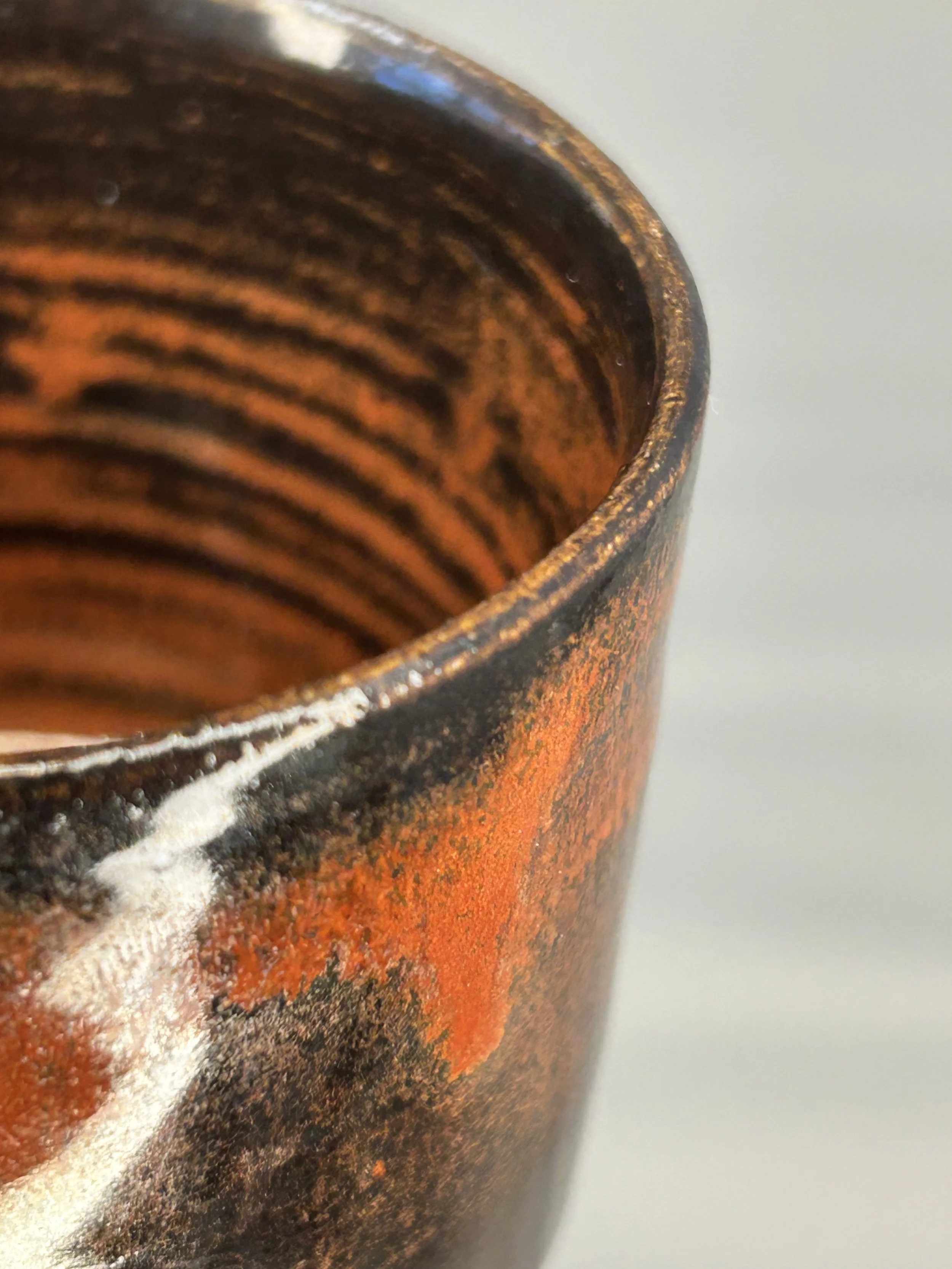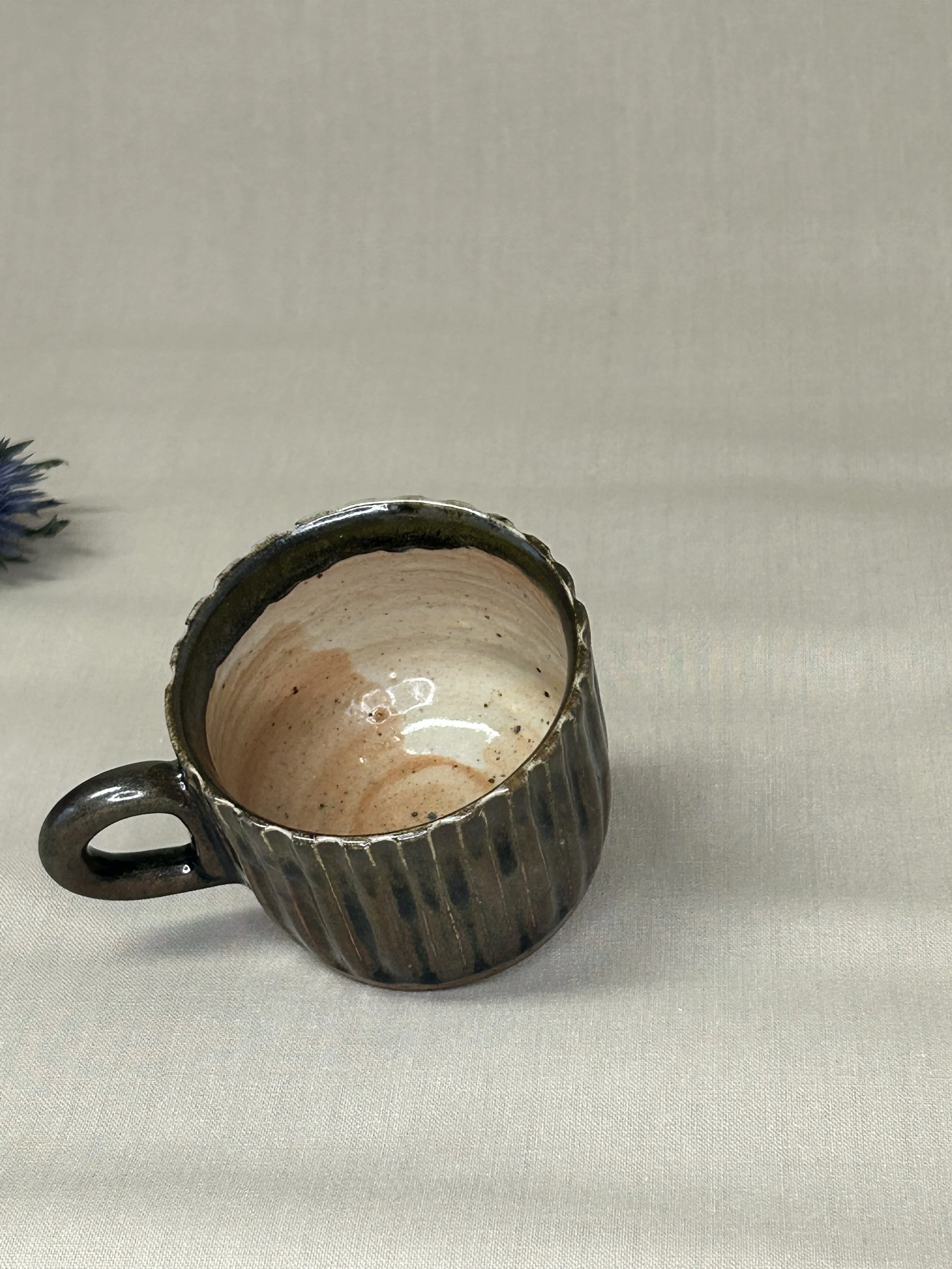 Die mittelgroßen Tassen sind mit feinen Shattering-Mustern verziert, die weiße Glasur bringt sie zum Vorschein; die grüne Glasur zeigt kleine punktförmige Effekte.